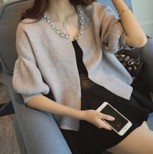 カーディガン☆カシミア襟ビーズ付きパフスリーブがかわいい‼︎/ 長袖 ビーズ ガーリー上品 エレガント 大人かわいい レディースファッション トレンド 秋冬 オフィスコーデ 通勤コーデ1010