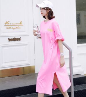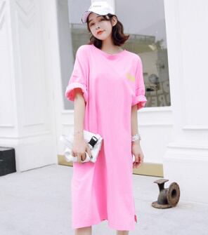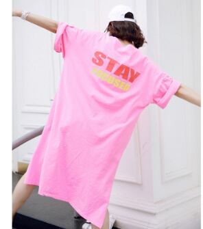 スリット入り☆ラウンドネックロング半袖ルーズシャツ/カジュアル レディースファッション 夏 トップス 着まわし 1025