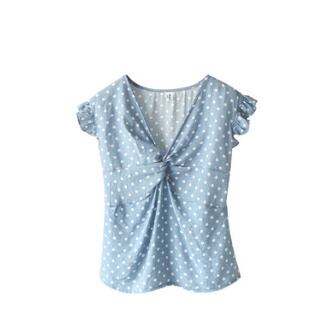 フレアノースリーブ☆Vネッククロスウェーブシャツ/ドット ブラウス ノースリーブ トップス レディースファッション 夏 ガーリー 大人かわいい 着まわし お出かけ デート 1027