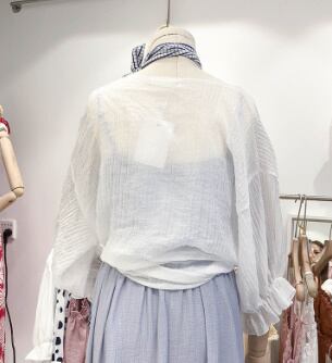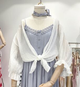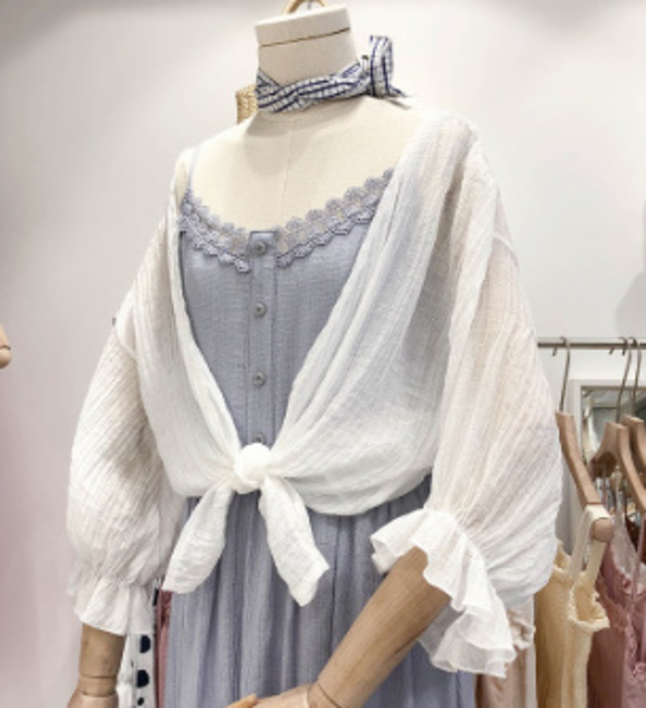 カーディガン☆ストラップフレア袖シャツ /無地 リボン フレアスリーブ ガーリー 上品 大人かわいい リボン 透け感 レディースファッション トレンド 夏秋 お出かけ デート 1035
