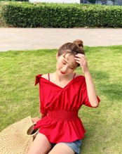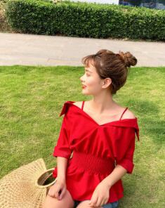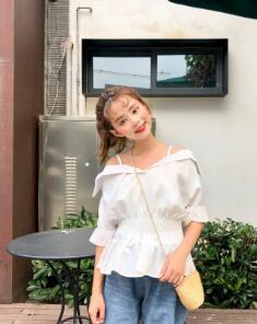 ストラップ付☆オフショルダーブラウス/ パフスリーブ ウェストギャザー シャツ オフショル トップス 無地 セクシー 大人かわいい ガーリー レディースファッション トレンド 夏 お出かけ デート 女子会 1052