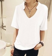 カジュアル☆半袖シャツ/ワイルド Vネック 半袖 ブラウス 無地 セクシー きれいめ レディースファッション トレンド 夏 お出かけ 着まわし 1064