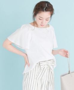カジュアルシンプル☆きれいめブラウス/ボートネック トランペットフレアスリーブ 半袖シャツ 無地 シンプル カジュアル レディースファッション 上品 大人かわいい エレガント お出かけ 夏 デート 着まわし 女子会 1082