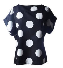 でかドットがかわいい☆フレンチスリーブシャツ/半袖 ドット ラウンドネック Tシャツ ガーリー 大人かわいい レディースファッション トレンド カジュアル 夏 お出かけ 着まわし デート 1084