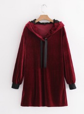 ゆったり☆ベルベットフード付きワンピース/長袖 ミモレ丈 フード レディースファッション トレンド 秋冬 カジュアル ゆるシルエット オーバーサイズ 上品 大人かわいい エレガント お出かけ デート 1088