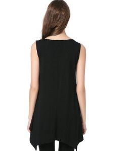 ラウンドネック☆ノースリーブアシンメトリーフレアトップス/無地 シンプル カジュアル レディースファッション トレンド 夏 ゆったりサイズ 楽ちん 着まわし 1090