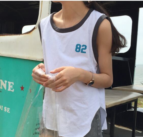 シンプル☆シックなワンポイントルーズノースリーブ/レディースファッション トレンド 夏 楽ちん ゆったり タンクトップ お出かけ 着まわし 754