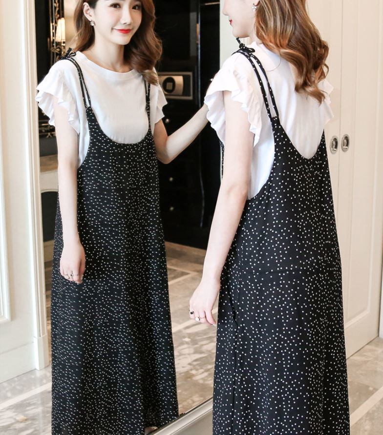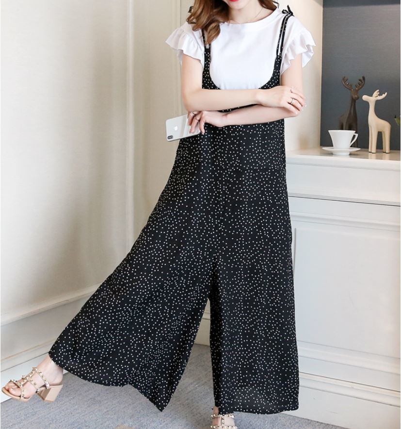 2018夏新しいフライングスリーブTシャツ+ルーズウェーブパンツ/ゆったりサイズ 楽ちん ゆるシルエット レディースファッション トレンド 夏 レイヤード オールインワン お出かけ リゾート 573