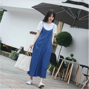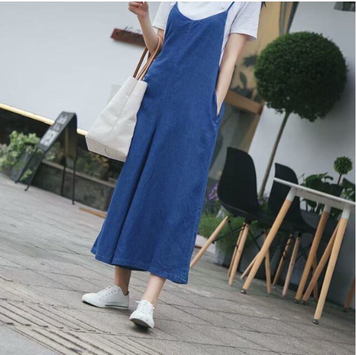 2018夏デニムオールインワン ロング Aライン ルーズスカート ゆったり 楽ちん ゆるシルエット レディースファッション トレンド 夏 お出かけ 578