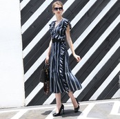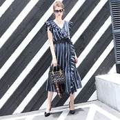ワンピース ストライプ Vネック ハイウエスト ノースリーブ ネクタイロングスカート エレガント 上品 レディースファッション トレンド 夏 お呼ばれ お出かけ リゾート 582