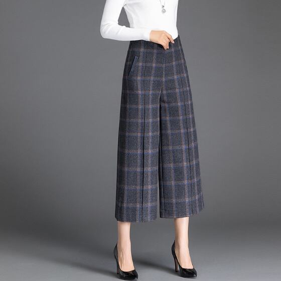 秋冬物☆タータンチェックミディアム丈ガウチョパンツ/ワイドパンツ きれいめチェック ハイウエスト レトロ 大人かわいい 上品 レディースファッション トレンド 秋 着まわし お出かけ 【5】【A34】