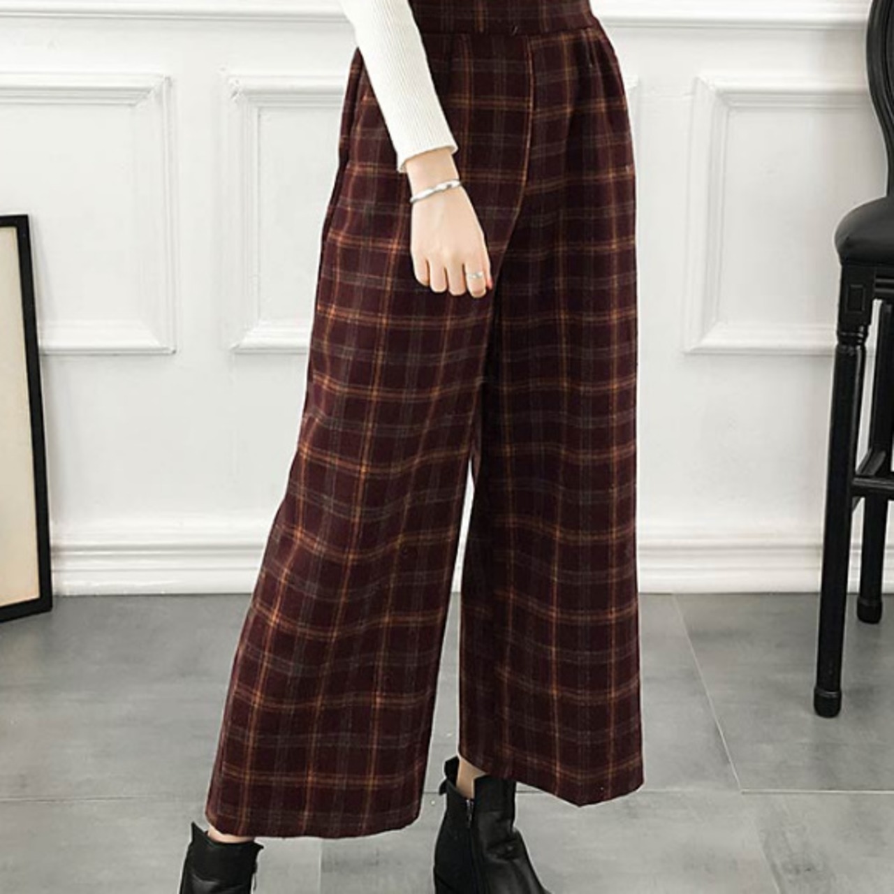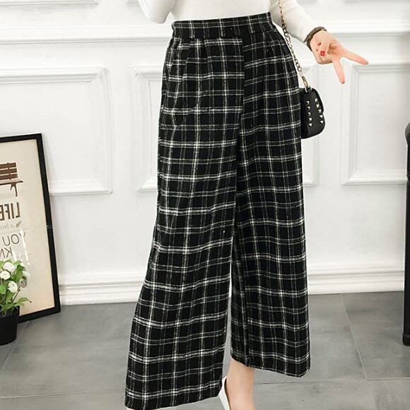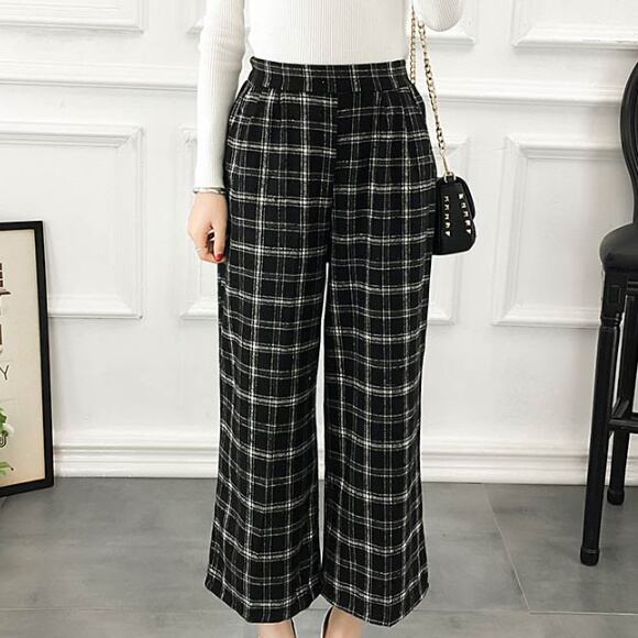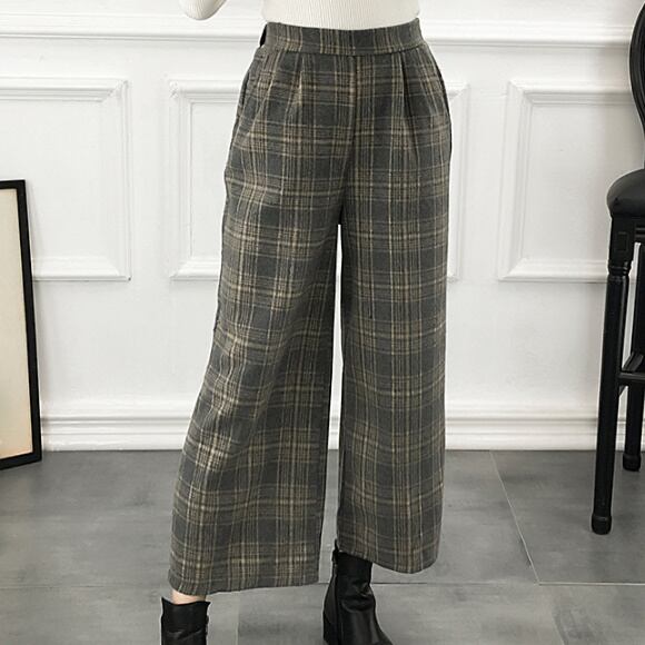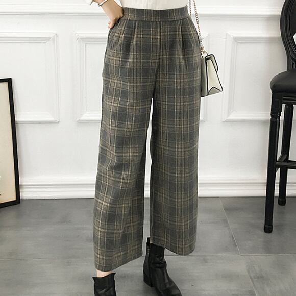 ワイドレトロ☆ストレートチェックパンツ/ワイドパンツ タータンチェック ハイウエスト ゆったり 楽ちん ウエストゴム カジュアル レトロ 上品 レディースファッション トレンド 秋 着まわし お出かけ 【30】【A57】
