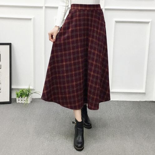 Aライン☆ウールチェックロングスカート/ハイウエスト ウエストゴム ロングスカート カジュアル レトロ タータンチェック レディースファッション トレンド 秋 上品 エレガント デート お出かけ【31】【A58】