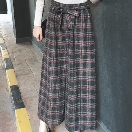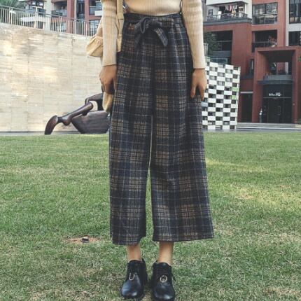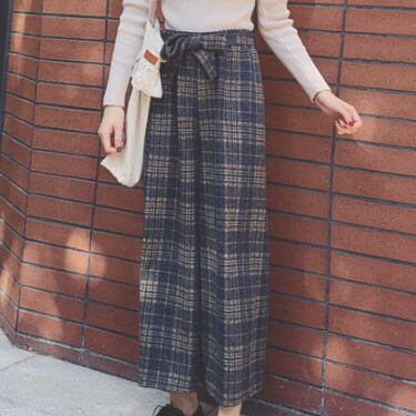 秋冬物☆ワイドパンツ/カジュアル ウエストリボン パンツ タータンチェック ハイウエスト ゆったり 楽ちん ゆるシルエット カジュアル 上品 レディースファッション トレンド 秋 着まわし お出かけ 【34】【A61】