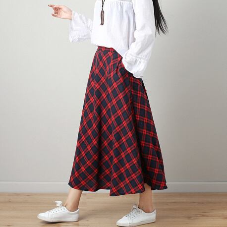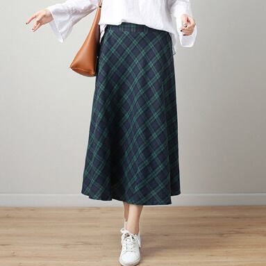 ななめチェックスイング☆ロングスカート/きれいめチェック ロングスカート ハイウエスト ウエストマーク カジュアル ミモレ丈 上品 大人かわいい レディースファッション トレンド 秋 着まわし お出かけ【47】【A72】
