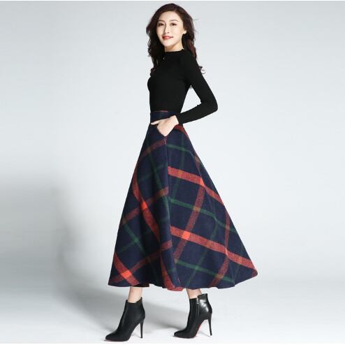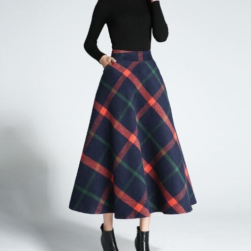 大柄ななめチェック☆ワイドフレアロングスカート/ハイウエスト ロングスカート 大柄チェック きれいめ 上品 大人かわいい レディースファッション トレンド 秋 女子会 デート ウエスト 【51】【A76】