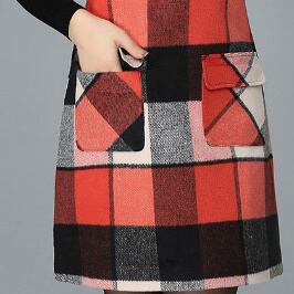 ボートネック☆ポケット付きスリムミニワンピース/長袖 大柄チェック ミニ丈 きれいめ 大人かわいい 大人女子 エレガント レディースファッション トレンド 秋冬 お出かけ 女子会 デート【56】【A80】