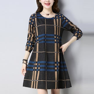 でかチェック☆ラウンドネック長袖ワンピース/カジュアル ガーリー 上品 レトロ エレガント ミモレ丈 大柄チェック ラウンドネック レディースファッション トレンド 秋 お出かけ 着まわし【70】【A92】