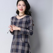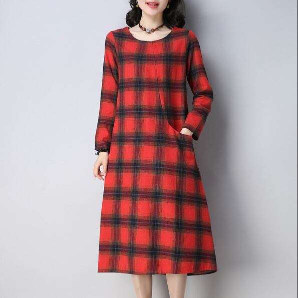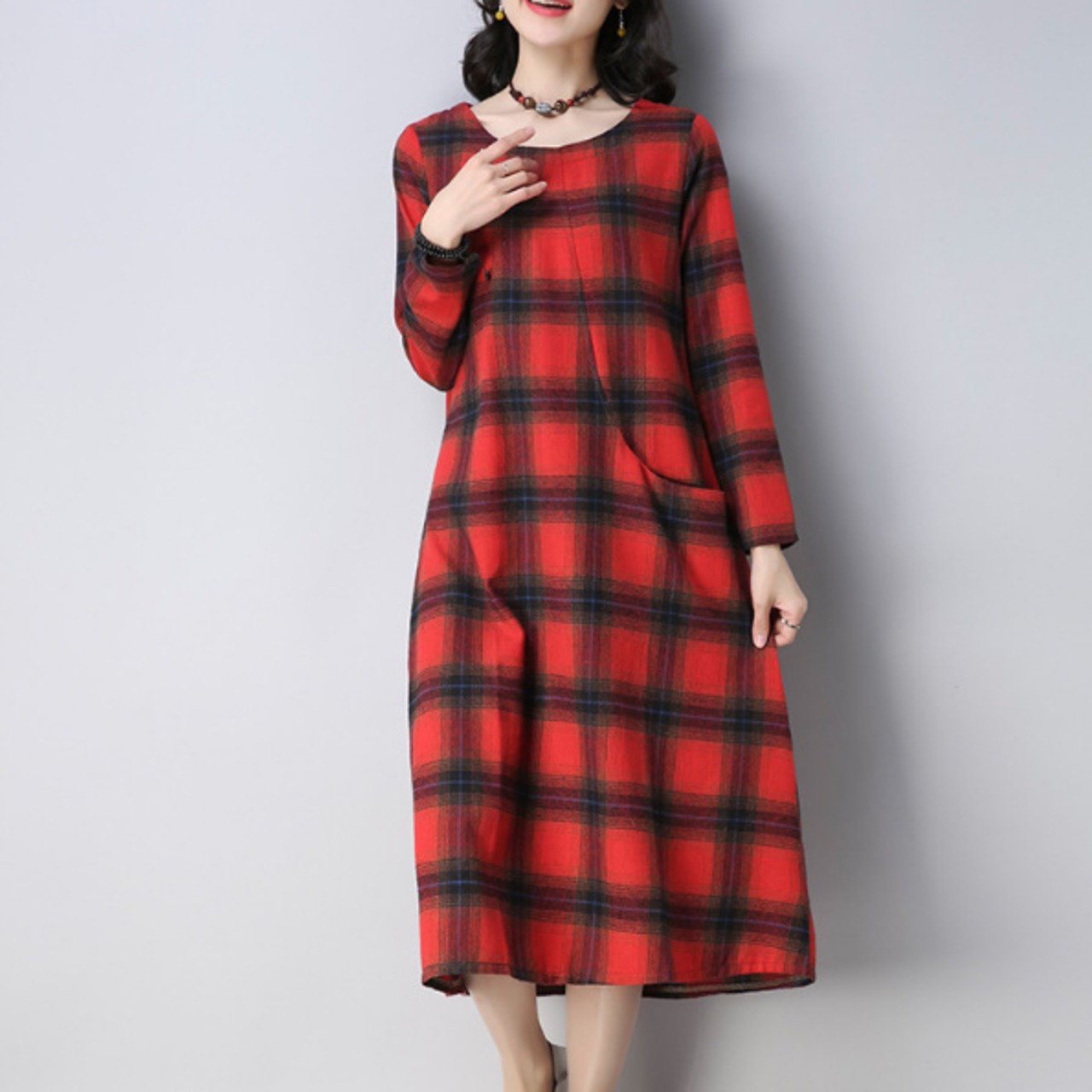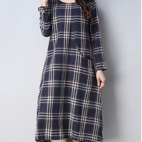 きれいめカジュアル☆タータンチェックワンピース/デザインぽっけ付き ラウンドネック ゆったり 楽ちん 大柄 チェック 長袖 ワンピース 大人かわいい 上品 レディースファッション トレンド 秋 お出かけ 女子会 着まわし 【76】【A98】