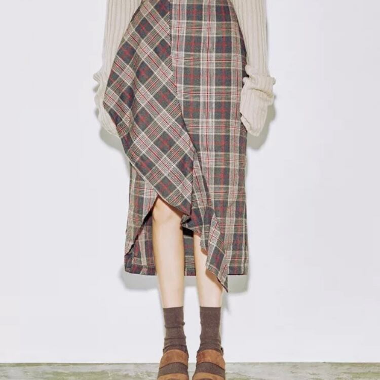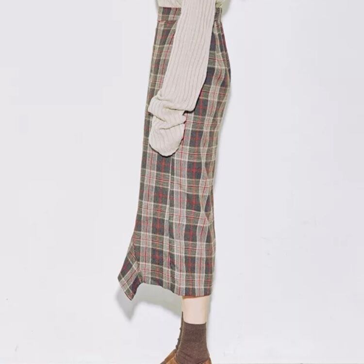 チェックミモレ丈スカート レトロ 大人かわいい タイト フリル レディースファッション トレンド 秋 お出かけ 女子会 【607】