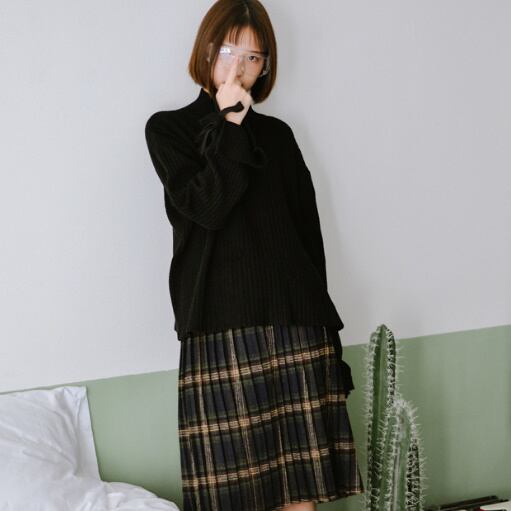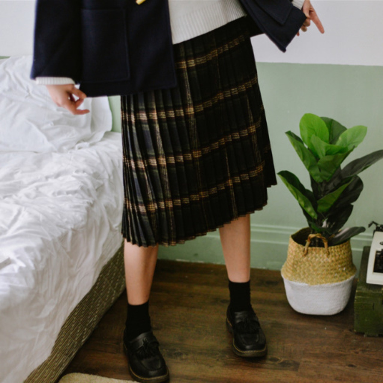 かわいい 上品 秋冬物 チェック カレッジ風 プリーツスカート ミモレ丈 お出かけ 女子会 ネイビー トレンド【A108】