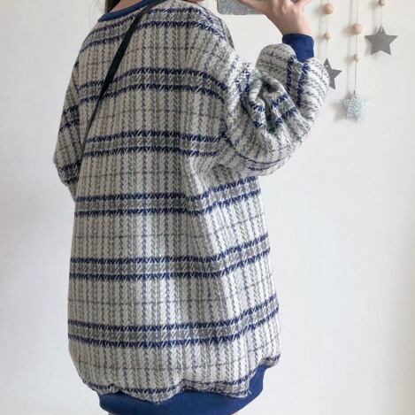 大人かわいい ガーリー チェック 長袖 パフスリーブ ほわっと セーター シャツ かわいい 秋 冬 お出かけ お呼ばれ【A116】