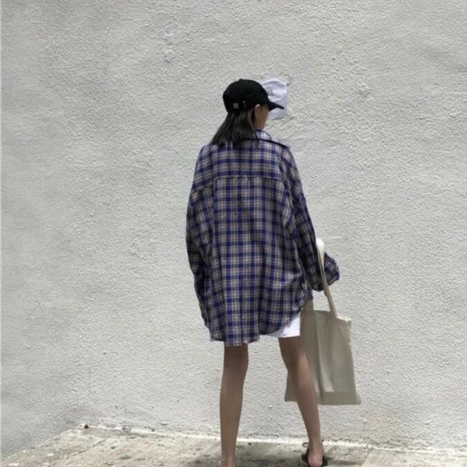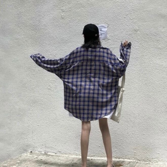カジュアル ビッグシルエット チェック 細見え 羽織り シャツ 長袖 お出かけ 着回し 【622】