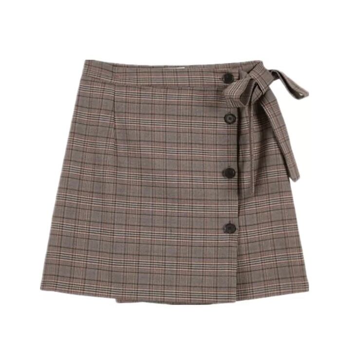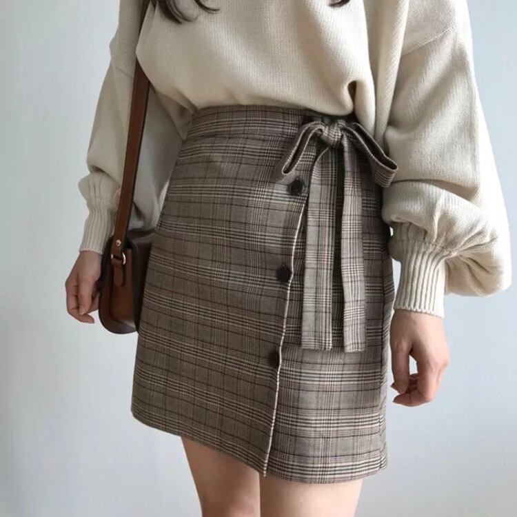 チェック柄 ミニスカート 台形スカート ガーリー リボンポイント レディースファッション トレンド 秋 ガーリー デート 【636】