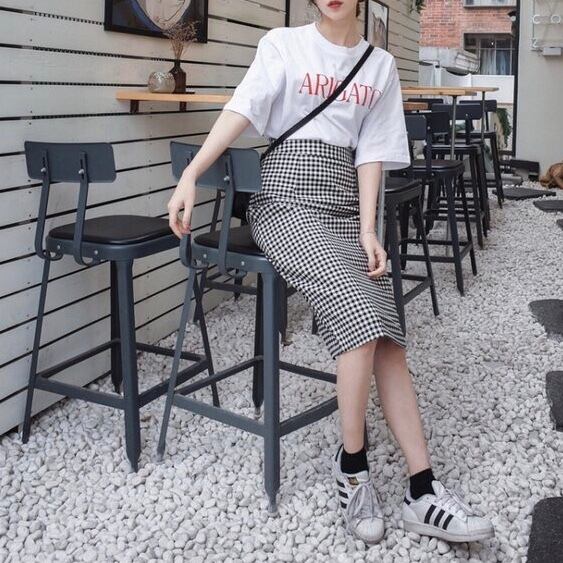 ブロックチェック ミモレ丈スカート チェック レディースファッション トレンド 秋 タイトスカート 膝丈 着まわし デート 【640】