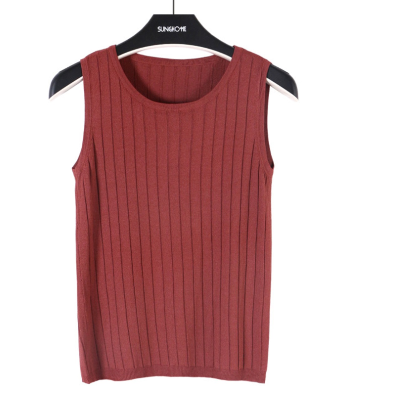 シンプル☆ラウンドネックトップス ノースリーブ ニット 無地 シンプル カジュアル レディースファッション トレンド 夏 Vネック お出かけ 着まわし787