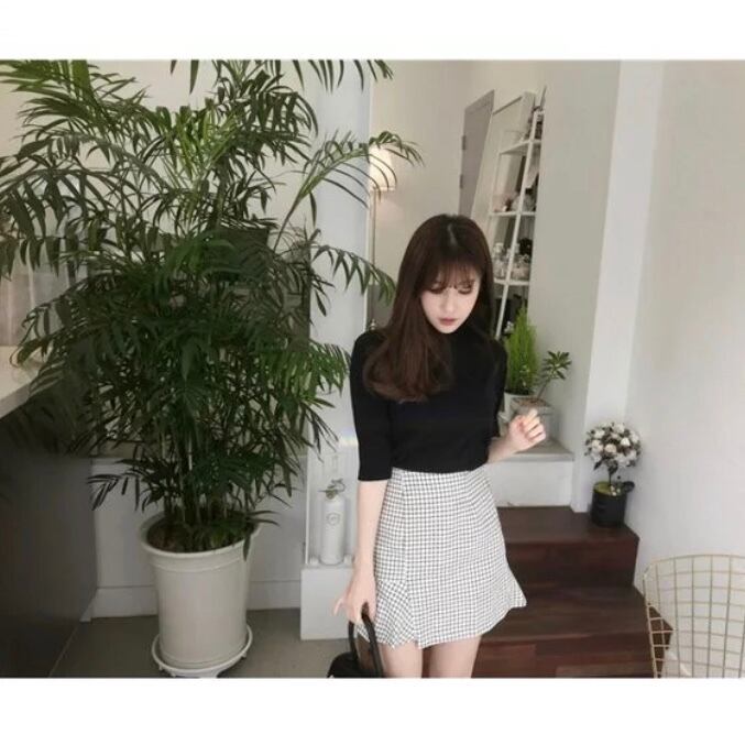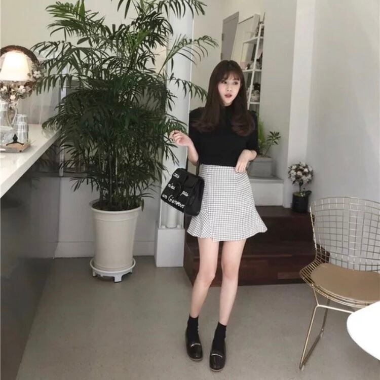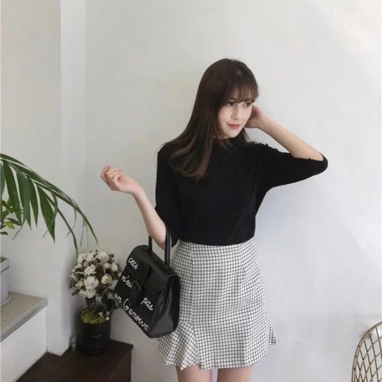 シンプル☆ガーリーチェックモノトーンミニスカート チェック きれいめチェック ミニ丈 ハイウエスト ホワイト 大人かわいい ガーリー かわいい おしゃれ スカート レディースファッション トレンド 秋 お出かけ デート 女子会【667】