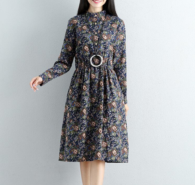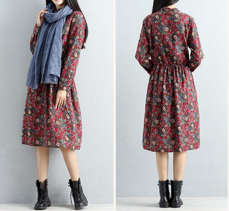 シックな小花柄☆レトロフラワーワンピース 長袖 レッド ブルー カジュアル レトロ ミモレ丈 ワンピース 秋にぴったり 花柄 楽ちん ゆったり 秋コーデ レディースファッション トレンド 大人かわいい お出かけ デート 796