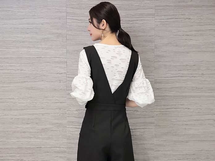 オールインワン サロペット レディース ジャンスカ 秋新作 レイヤード エレガント 無地 ブラック 上品 大人かわいい レディース ハイウエスト ジャンスカ トレンド お出かけ 女子会 秋 【701】