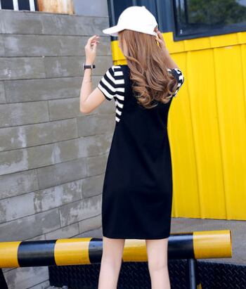 2018年夏新作 ワンピース レディース ドレス 上品 クール ストライプ セットアップ 白Tシャツ 短袖 ワンピース シフォン レディース 着痩せ 大人可愛い オシャレ デート お出かけ 【B1】