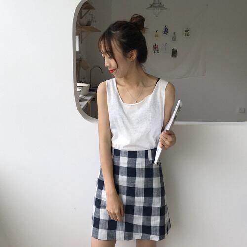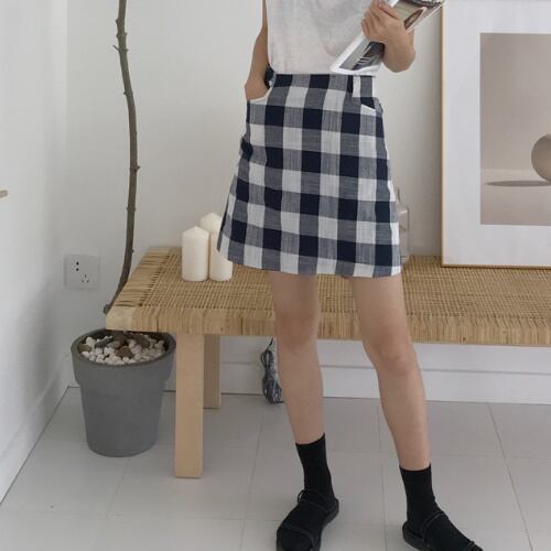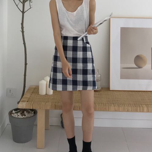 シック 大柄チェック ソフトライン ミニスカート ブラック 大柄ハーリキンチェック レディースファッション トレンド お出かけ 【A229】
