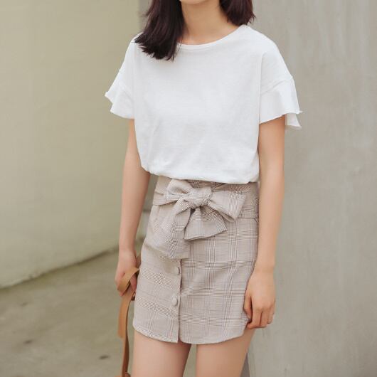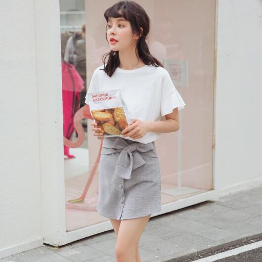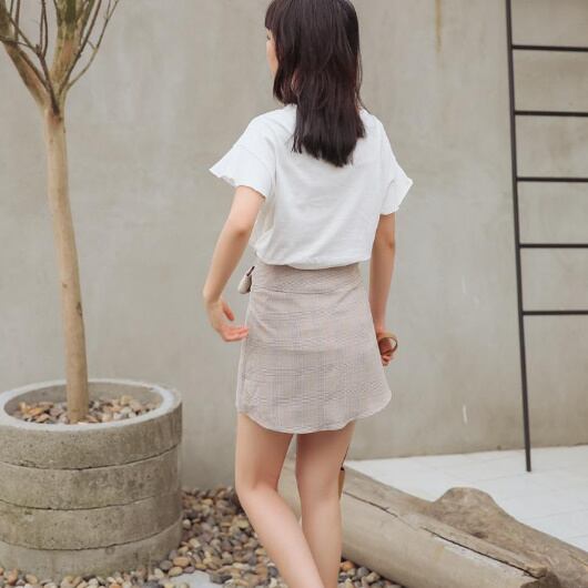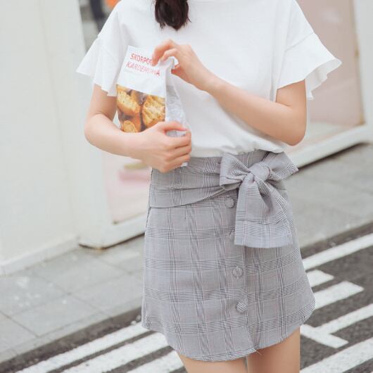 ガーリー ウェストリボン付き ボタンダウン チェックミニスカート シック キュート レディースファッション トレンド お出かけ デート 【A235】