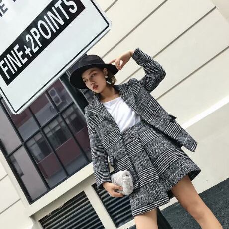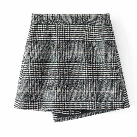 シック 大柄グレンチェック ウール ミニ巻きスカート 2018年 秋 レディースファッション トレンド キュート お出かけ デート【A239】