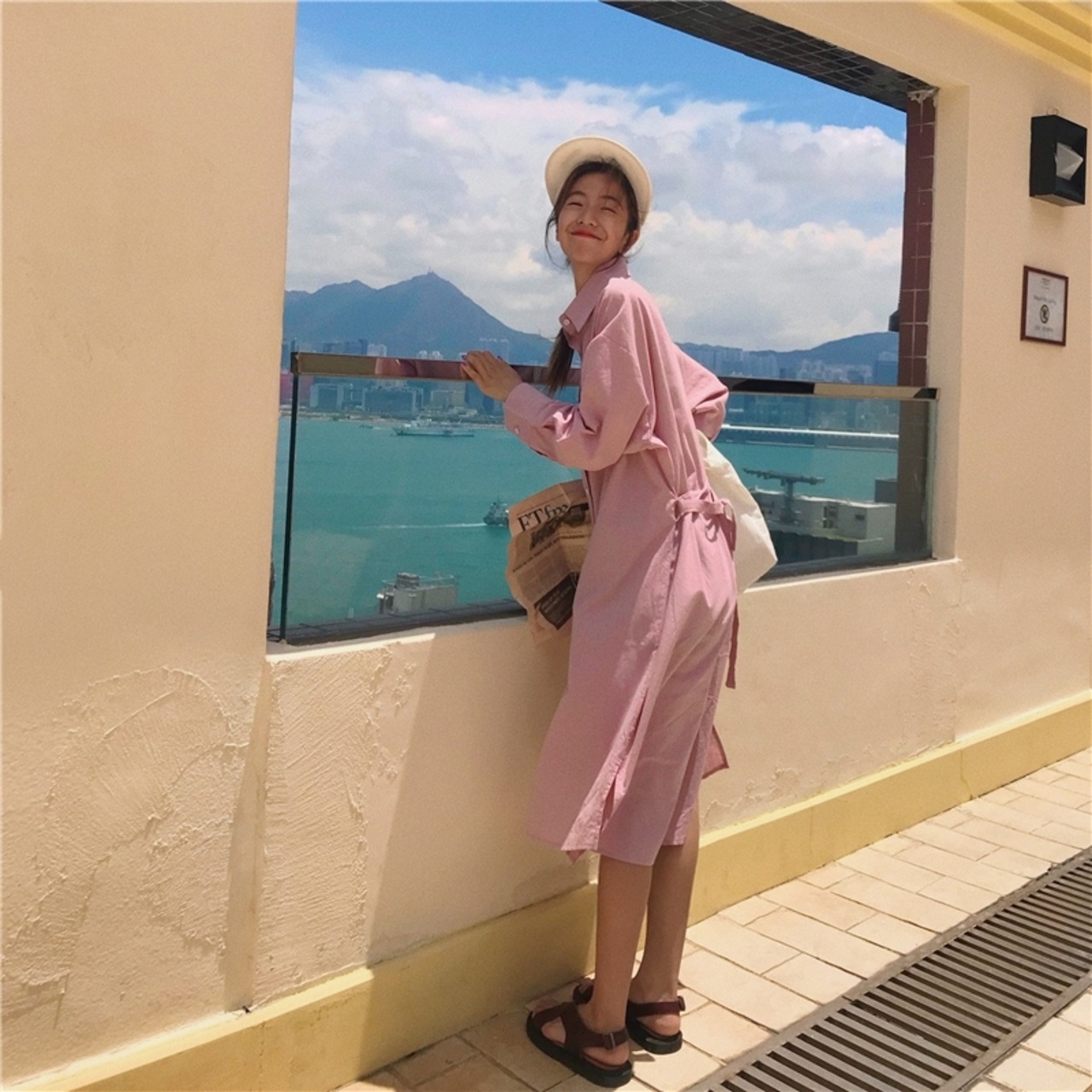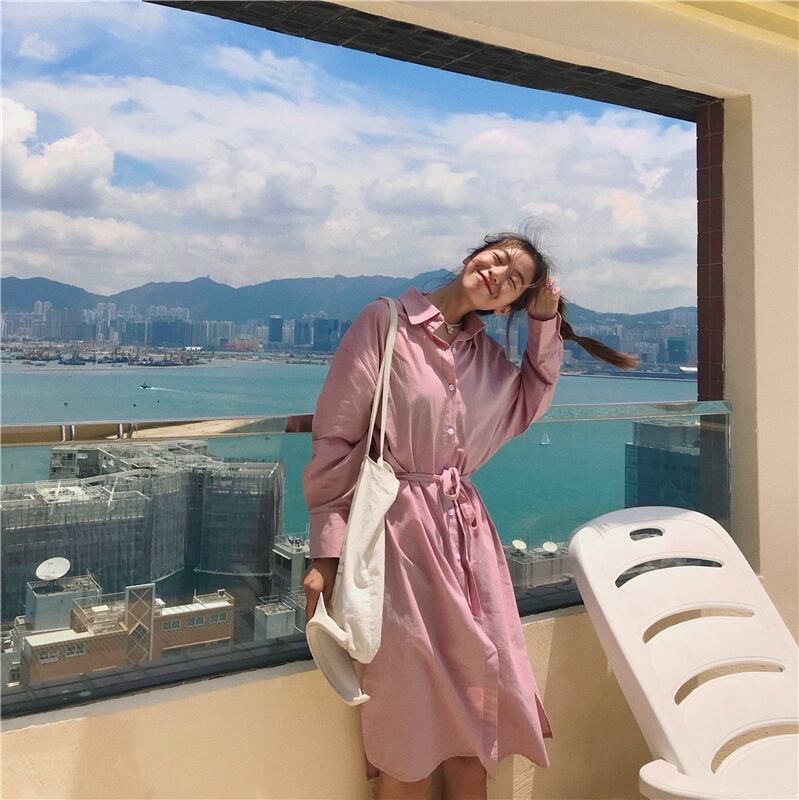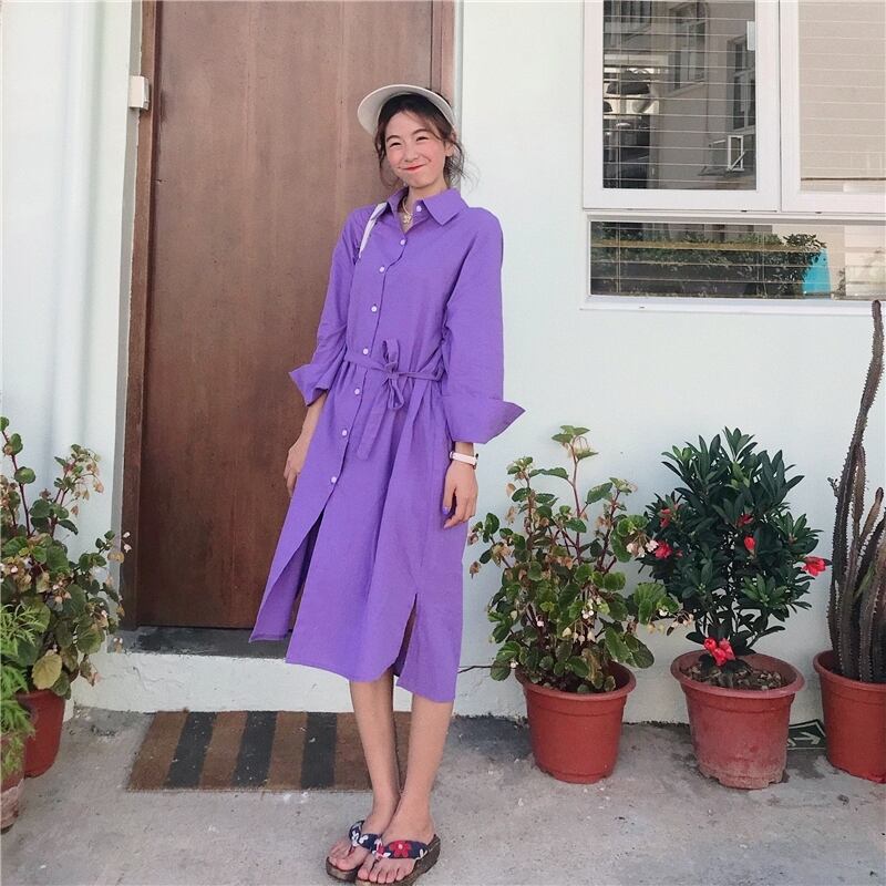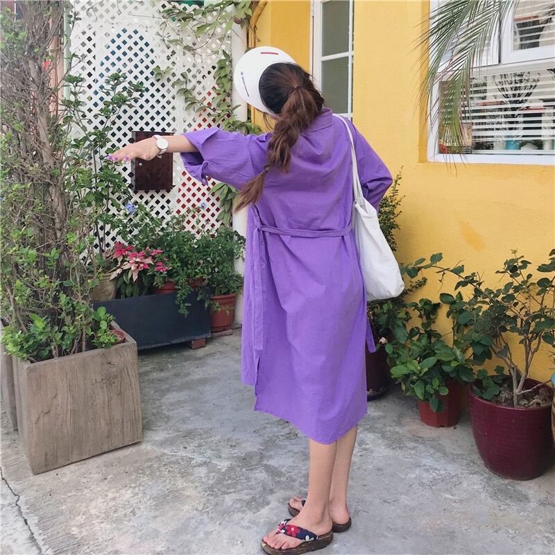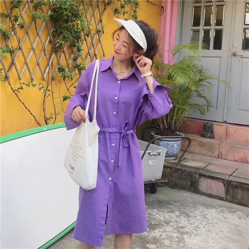 カジュアルスタイル☆シャツワンピース レディース ファッション ワンピース きれいめ ドルマン スリーブ 体型カバー ハイウエスト ウエスト紐付き 羽織 ゆったり 楽ちん シンプル 大人上品 女子会 お出かけ 着まわし パープル 薄ピンク 【533】