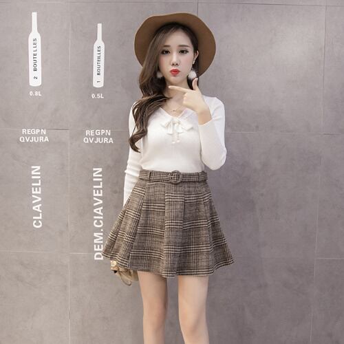 レトロ グレンチェック ウール ベルト付きフリルミニスカート 秋 冬 レディースファッション トレンド お出かけ デート シック 大人かわいい【A241】