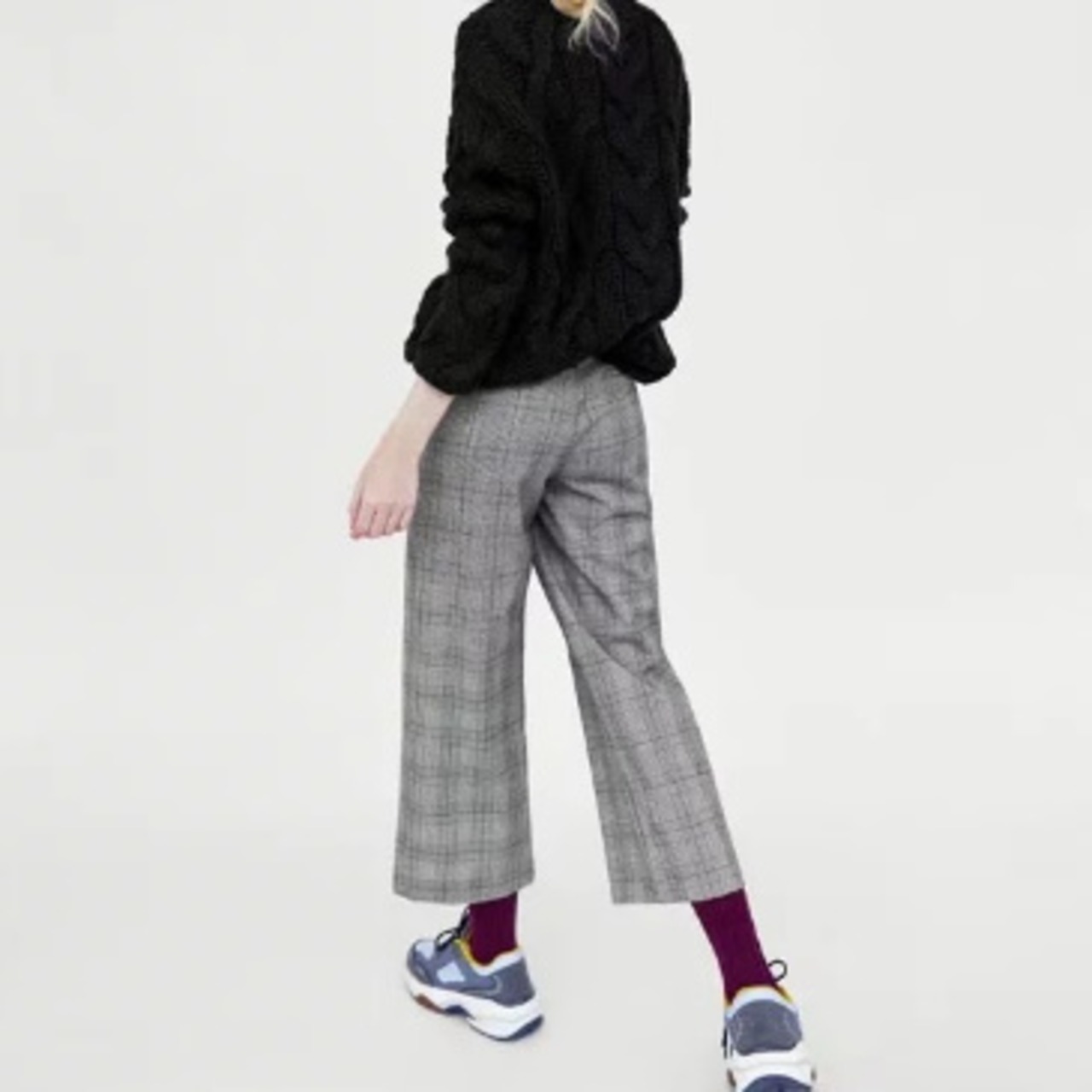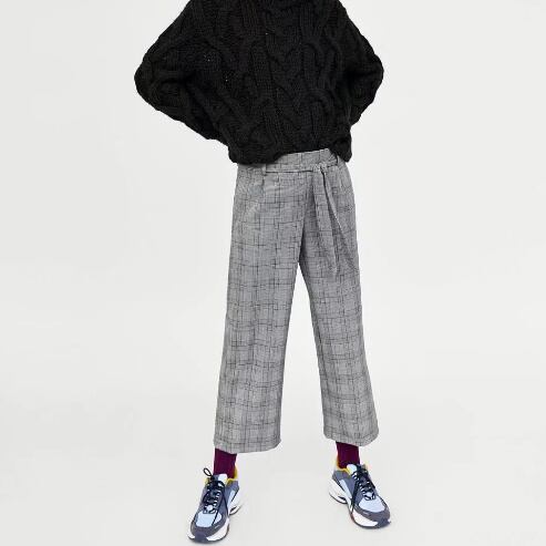 カジュアル グレンチェック ワイドレッグ ミモレ丈 ストレートパンツ レディースファッション トレンド シック お出かけ 着まわし 通勤コーデ 【A271】