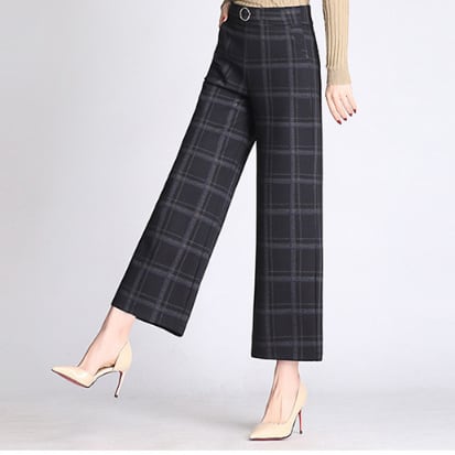 シック ウェストベルト付き 大柄チェック ワイドレッグパンツ レディースファッション トレンド カジュアル お出かけ 通勤コーデ 【A273】