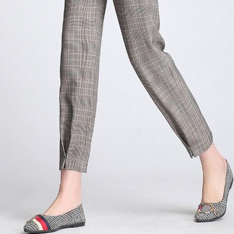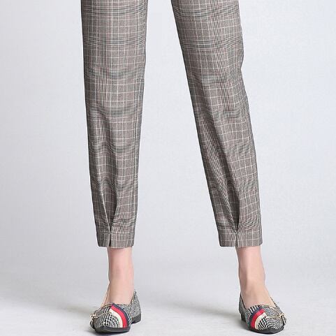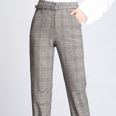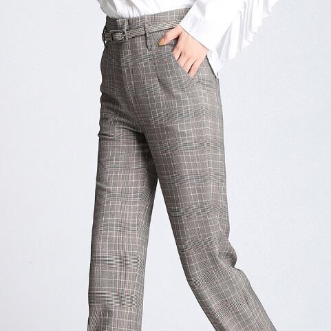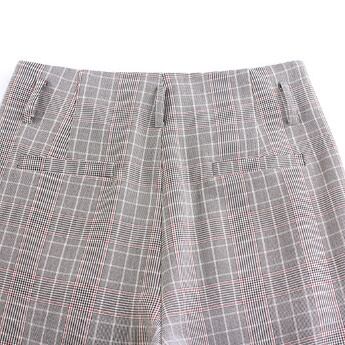 シック 裾タック入り ベルト付き チェックストレートパンツ レディースファッション レトロ トレンド お出かけ 通勤コーデ【A288】