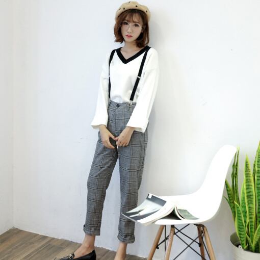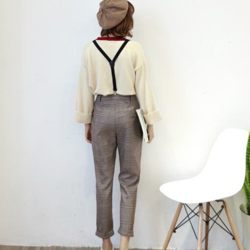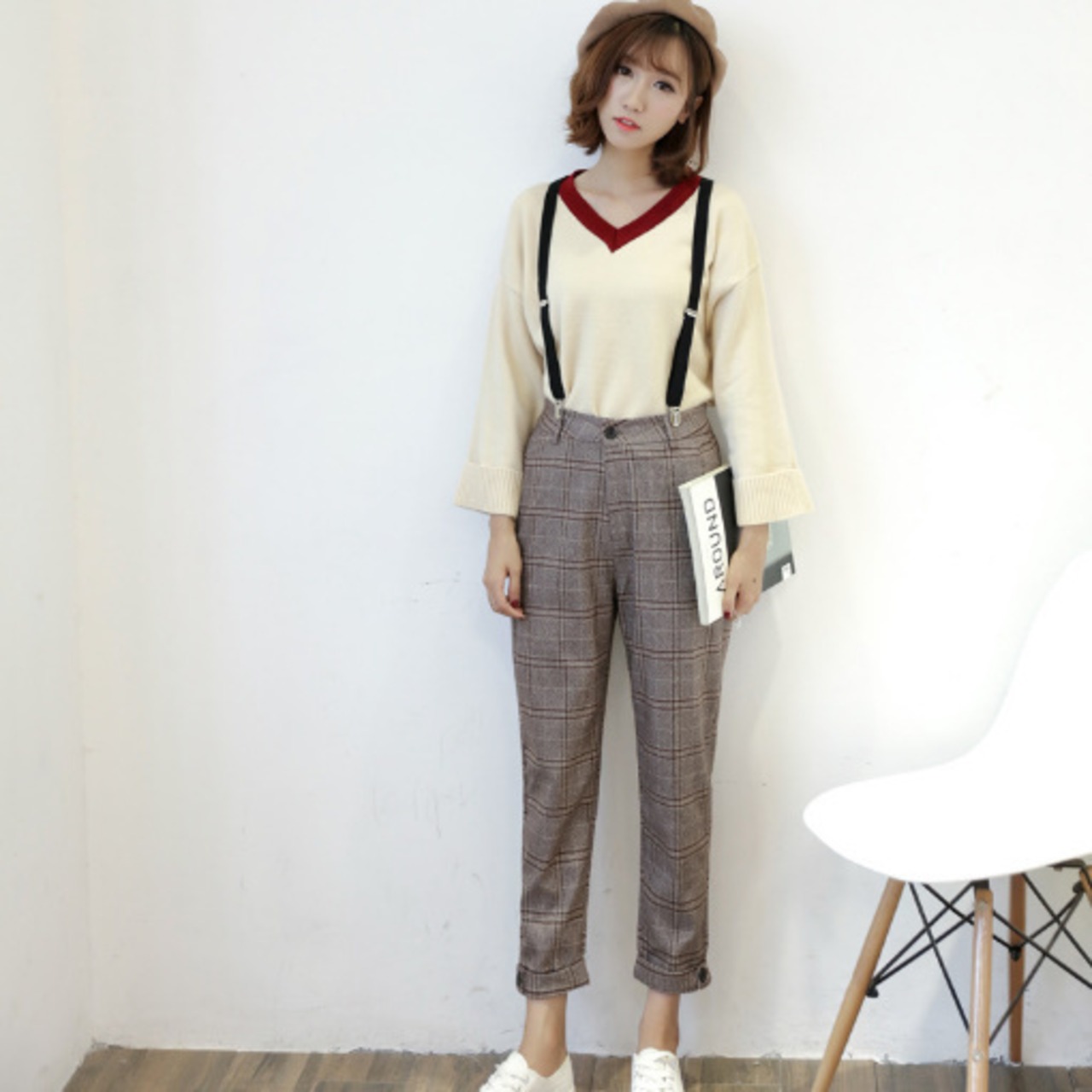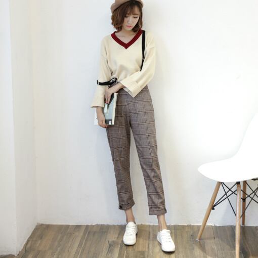 カジュアル 大柄グレンチェック ミモレ丈 ストレートパンツ レディースファッション トレンド シック お出かけ 着まわし 【A289】