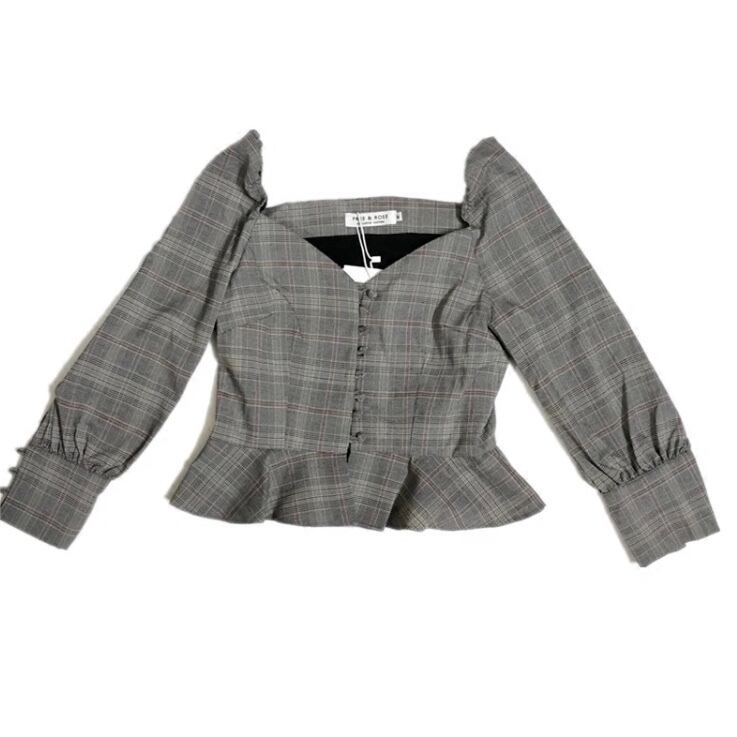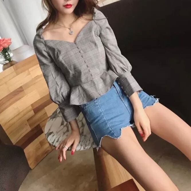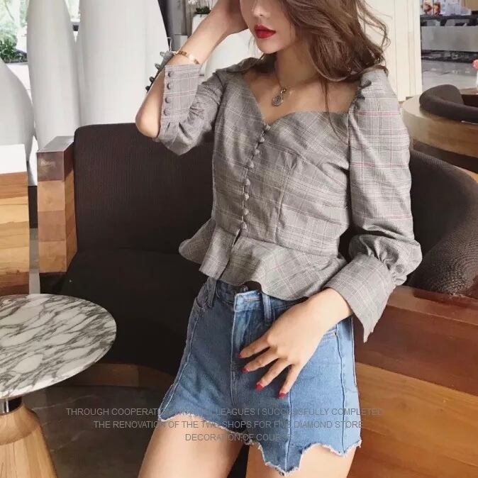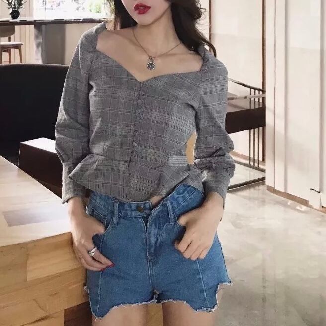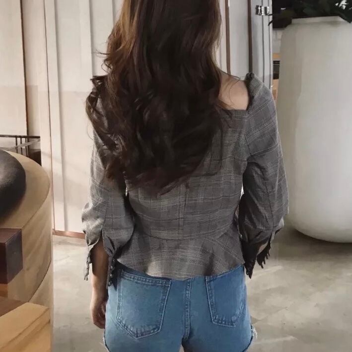 デコルテライン ショートチェックトップス デート セクシー 女子会 E1