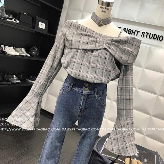 オフショル ビッグリボン風 ベル袖トップス デート お出かけ ガーリーE3
