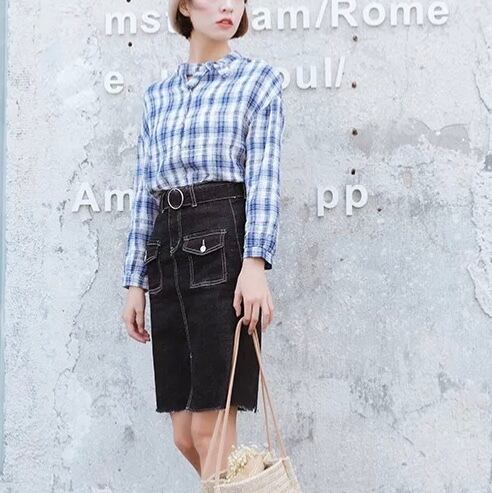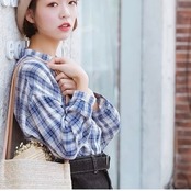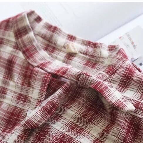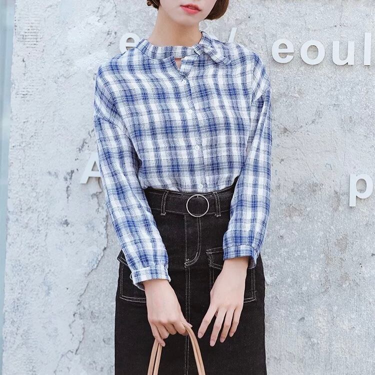 スリムチェック リボンシャツ カジュアル デート 女子会E5