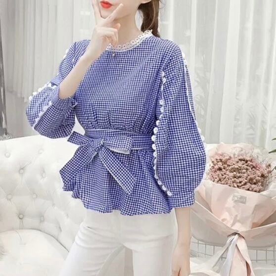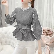 ウエストマーク スタイルアップ バルーンスリーブシャツ デート 女子会 ガーリー E15