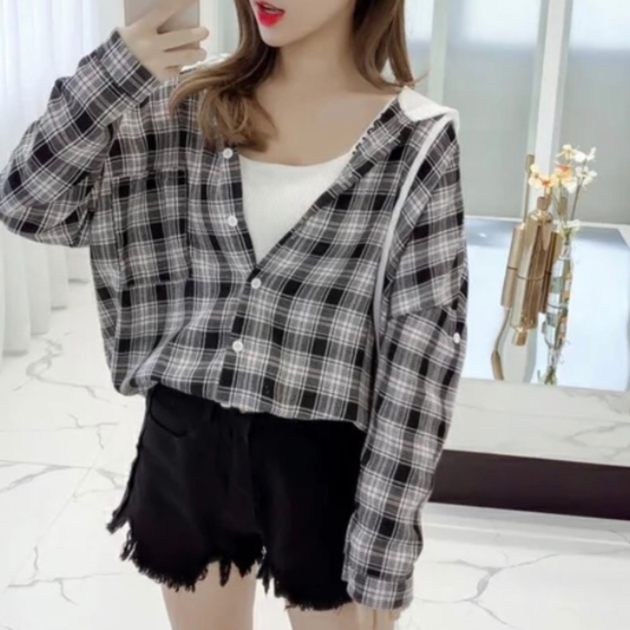 フードセットオーバー シャツ カジュアル ガーリー 女子会 着回し E18