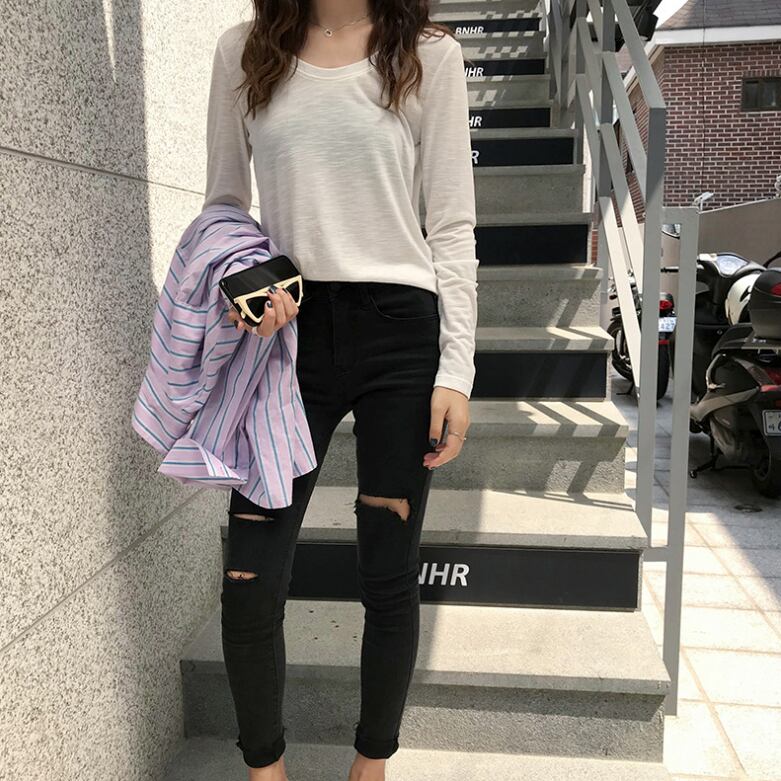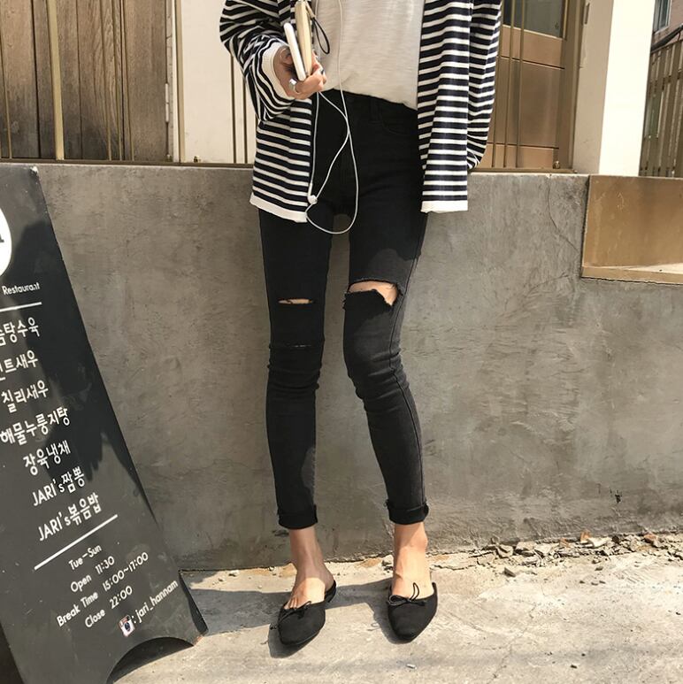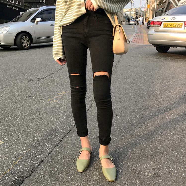 秋新作 クロップドパンツ デニム レディース ハイウエスト スキニー ダメージ ボトムス きれいめ カジュアル レディース デニム ロング パンツ 【B18】