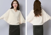 ラフな着心地とゆるさが可愛い♡大人気のドルマン Vネック 秋冬 レディース 長袖 トップス プルオーバー ニット ゆったり Vニット 体型カバー シンプル 大人上品 無地 シンプルコーデ プチプラ 通勤コーデ デート 女子会 【535】